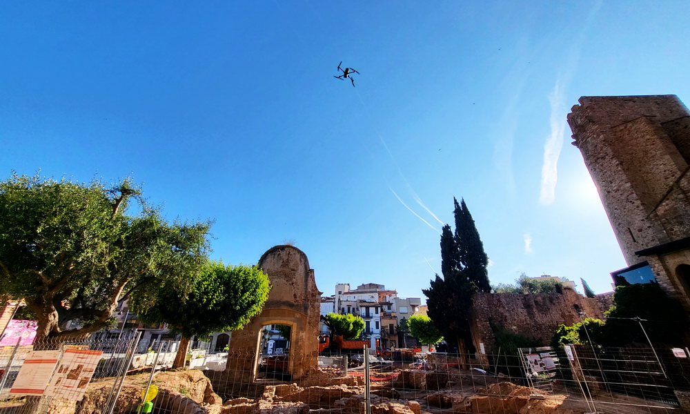 Aquest matí de dilluns s’han començat a fotografiar amb dron les restes arqueològiques de la plaça del Monestir per poder tenir constància visual del que s’hi ha trobat abans de fer-ne el cobriment.