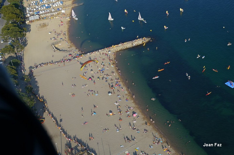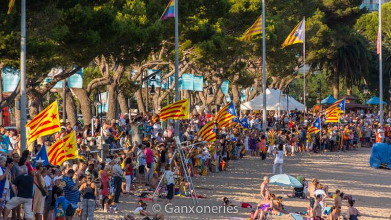 El passat dissabte 17 d’agost va tenir lloc a la platja i a la badia de Sant Feliu de Guíxols una cadena humana Via Catalana de més de 1.100 persones, un èxit rotund, ja que es va cobrir tota la platja d’espigó a d’espigó i a la badia s’hi van sumar caiacs i diverses embarcacions.
