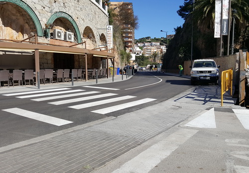 Des de divendres resta obert definitivament al trànsit el carrer Colom, després de la seva reurbanització, pendent només dels darrers treballs com la col.locació, a la banda de mar, dels pivots de la vorera i de rematar la tanca d’acer corten que separa el carrer de l’entrada d’accés al promontori dels Guíxols.