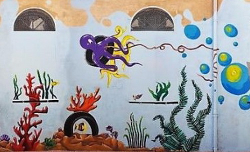 Aquest mural ha estat creat per Paula Vicente, Andrea Pajares i Blanca Escubós, que l’han pintat amb un doble objectiu: sumar-se al projecte Espais que parlen de l’Associació Cultural Aleph i per donar visibilitat de forma creativa a un espai que, tot i estar en ple centre del municipi, encara no és prou conegut.