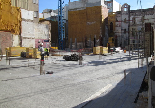 Els encofrats de l’estructura del futur hotel Elke de la Rambla del Portalet de Sant Feliu de Guíxols continuen a bon ritme després que fa unes setmanes es construís la llosa del soterrani, ja s’ha enllestit la planta baixa i s’estan construint els pilars de la primera.