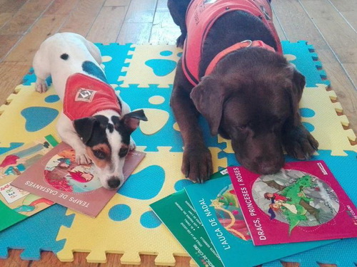 Es tracta d’una proposta dirigida als nens i nenes de 6 a 12 anys que llegeixen una estona acompanyats de dos gossos (la Zoe i la Gina) ensinistrats per l’ATAGI (Associació de Teràpia amb Animals de Girona).