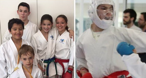 En Sergi de 7 anys,i l’Aida i l’Oriol de 11 i 12 anys participaven en la categoria de katas (demostració tècnica) i en Victor de 13 anys juvenil i la Lidia de 16 anys en la de kumite (combat). Tots van fer un gran equip competitiu i s’ho van passar molt i molt be.
