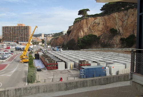 L’aparcament de la zona del Club Nàutic, al port de Sant Feliu, hi té instal·lats els grans motlles on s’hi confegeixen els daus de formigó que reforçaran la part exterior del dic de recer, per on les onades en dies de temporal salten fins l’interior de la badia afectant a les embarcacions amarrades en aquest sector. L’actuació inclosa en el Pla d’inversions 2014-2017 de Ports de la Generalitat i en el Pla especial del port, suposa una inversió d’1.169.280 euros i un termini d’execució de quatre mesos.