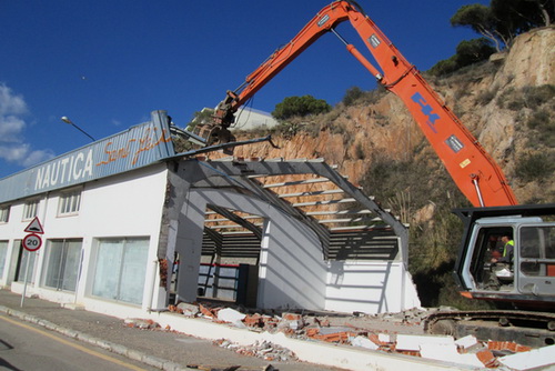 En el port s’hi continua fent endreça i després de l’enderroc de l’edifici de l’antiga seu de la Organización de Trabajos Portuarios, aquest dijous s’ha iniciat l’enderroc de l’antiga nau de Nàutica Sant Feliu, després que s’enretirés el sostre d’uralita per una empresa especialitzada. No hi ha previst cap mes enderroc, quan s’acabi el reforç del dic, a mitjans de juny, tota l’esplanada s’asfaltarà de nou i esdevindrà un espai molt més diàfan.