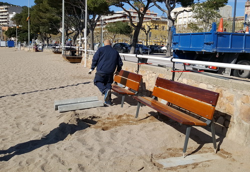 La brigada d’obres de l’Ajuntament ha instal·lat aquesta setmana dos nous bancs a peu de platja, a tocar de la barana i de les escales perpendiculars a la Rambla Vidal.
