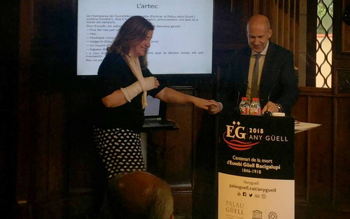 El passat dilluns l’escriptora ganxona Pilar Francès va recollir a Barcelona el segon premi dels Jocs Florals al Palau Güell, que li fou lliurat per l’escriptor Genís Sinca. L’escriptora va presentar un relat de 500 caràcters que porta el títol de “L’artec”.