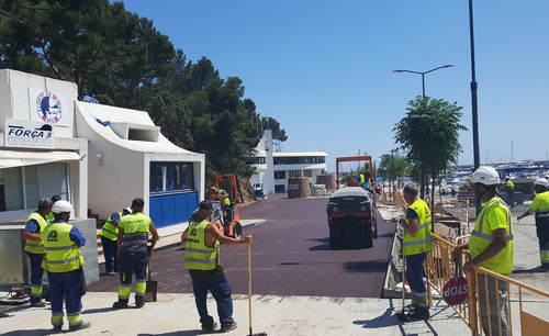 El vial de circulació de l’antic club nàutic ja ha estat enllestit amb l’asfaltat amb tres capes que s’ha estès a tocar de la pujada a El Salvament, mentre s’està avançant ostensiblement en l’enrajolat del nou passeig