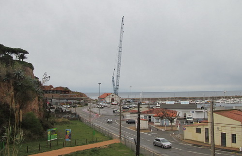 En el port han anat avançant els treballs previs a l’acció de reforç de l’escullera amb l’enderrocament d’edificis en primer lloc, espais que han facilitat la fabricació dels blocs que els tècnics han considerat adients per solucionar el problema dels salts de les onades a la badia, els quals seran traslladats per fondejar-los per l’espectacular grua de la qual hem fet un seguiment del muntatge que tanquem amb aquesta perspectiva que dimensiona les mides considerables amb què compta si la comparem amb alguns elements del paisatge portuari.
