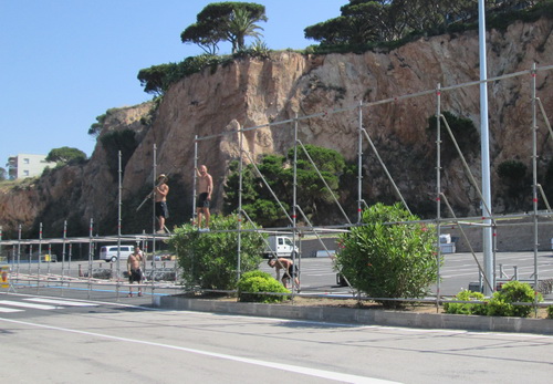 El primer espectacle que es fa en aquest espai, precisament és el d’aquesta brigada tot observant amb la rapidesa, facilitat i destresa que fan el muntatge de les estructures tubulars.