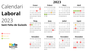 Aquests són els dies festius del calendari laboral d’aquest 2023 amb 13 dates assenyalades, més les dues festes locals del febrer i l’agost. Més enllà d’aquestes dies festius per a tothom, cal remarcar les festes de lliure elecció triades per les escoles i instituts locals. Encara per aquest curs escolar es marquen els dies 20 i 21 de febrer, coincidint amb el cap de setmana de carnestoltes. El 2 de maig també es festa de lliure disposició escolar a Sant Feliu.