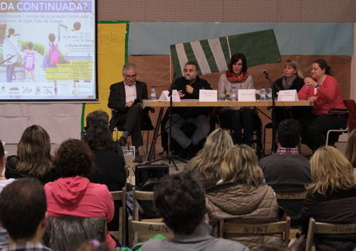 El passat dimarts es va celebrar a l’escola l’Ardenya de Sant Feliu de Guíxols una xerrada organitzada per l’Associació de Mares i pares d’alumnes (AMPA) de les escoles de la ciutat, on es varen debatre els pros i els contres de la jornada continuada a les escoles de a partir d’experiències de centres d’altres poblacions de la zona, com són les Fanals de Platja d’Aro, representada pel membre de l’Ampa, Àngel Guirado i Sònia Pujol Valls, regidora d’ensenyament de Santa Cristina d’Aro, a més del regidor d’ensenyament de Sant Feliu de Guíxols, Josep Ramon Llobet,.