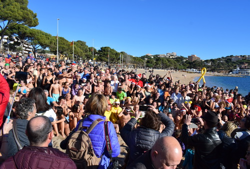 El primer bany de l’any que organitza el Club Aquàtic Xaloc a Sant Feliu de Guíxols va tornar a reunir més de 300 participants disposats a desafiar les baixes temperatures sota l’atenta mirada dels centenars d’espectadors que, abrigats amb anoracs i bufandes, seguien visualment les evolucions dels més atrevits i els enregistraven amb els seus dispositius mòbils. Segons els organitzadors, el participant més jove tenia 1 any i el més gran 81.