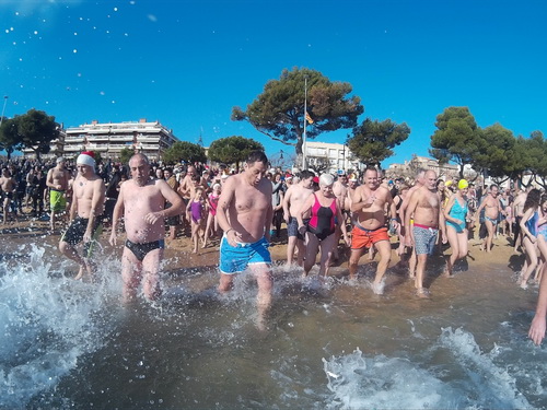 Un any més centenars de persones de totes les edats es varen aplegar a la platja de Sant Feliu de Guíxols el primer dia de l’any amb prop de 300 participants i molts més espectadors.