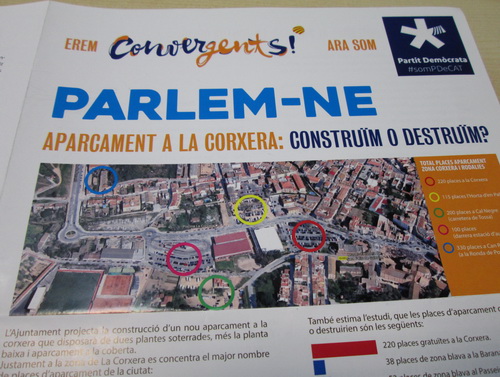 El grup municipal del Partit Demòcrata Europeu Català (PDeCAT), antiga Convergència i Unió (CiU) de Sant Feliu, ha editat i distribuït per tota la ciutat un butlletí informatiu que sota l’enunciat “Parlem-ne” incideix , com a tema central, en la seva proposta d’aparcament que dissenteix de la proposada per l’equip de govern a La Corchera, considerant que s’hauria de preveure al passeig i aparcaments gratuïts tant a La Corchera com al sector de Calassanç.