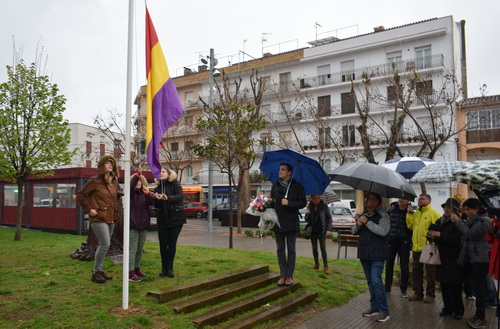 L’acte va tenir una durada més curta del previst per la pluja, i va consistir en hissar la bandera i dipositar un ram de flors als peus de l’escultura d’Ana Gutiérrez, que homenatja les víctimes de la Guerra Civil i la Repressió. Aquest és homenatge als valors de llibertat, igualtat i fraternitat.