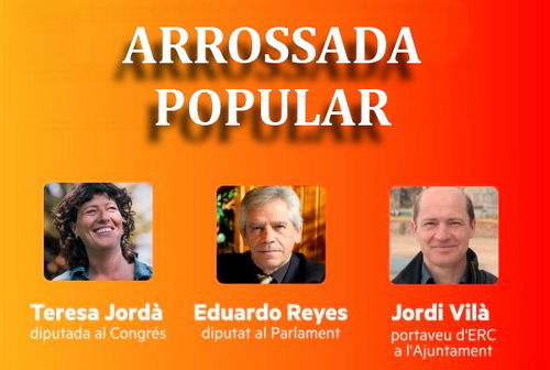 Hi intervindran: Teresa Jordà (diputada al Congrés), Eduardo Reyes (diputat al Parlament) i Jordi Vilà (portaveu d’ERC a l’Ajuntament).