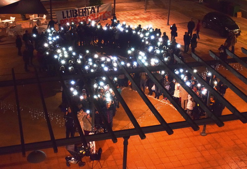 Dijous es convocava per les xarxes socials una nova concentració de suport, davant de l’Ajuntament, amb l’enunciat “Un mes sense els Jordis”, on els assistents varen fer una performance formant un llaç i amb els mòbils en posició de llanterna, davant d’una pancarta on es demanava la llibertat dels presos polítics.