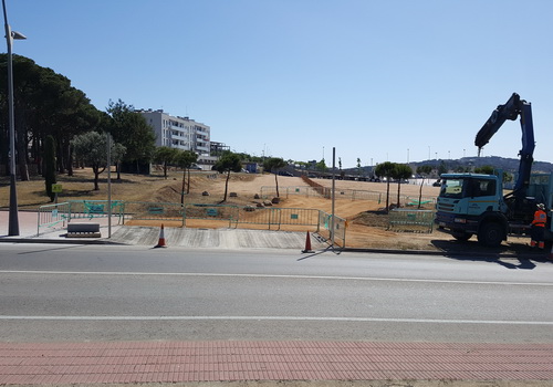 Operaris de l’empresa Massachs estaven ultimen aquesta setmana la nova pista de bàsquet pública que l’Ajuntament de Sant Feliu de Guíxols ha fet construir a tocar del pavelló municipal d’esports, en un espai que es troba entre l’equipament esportiu i el mur de tanca que separa el recinte de La Corxera i la carretera de Tossa.