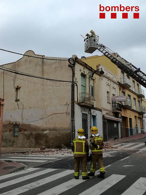 Dos operaris d’una empresa d’enllumenats han resultat ferits de diversa consideració en caure una peça del sostre d’una antiga casa a la carretera de Girona amb el carrer Rafel Aixada. L’accident a tingut lloc quan passaven uns minuts de les dues de la tarda.