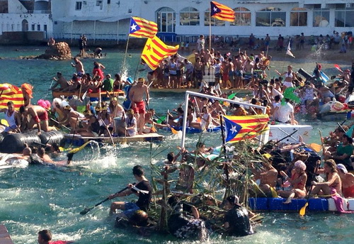 La “competició” ha anat afegint colles de participants fins arribar, enguany, a concentrar al racó de ponent 42 pasteres desbordades per centenars de joves, de les quals 34 varen arribar al final del recorregut i 8 varen naufragar en aigües de la badia davant de la mirada de la multitud que els observava i de centenars de dispositius mòbils que enregistraven la travessia per immortalitzar les incidències de l’esbojarrada prova.