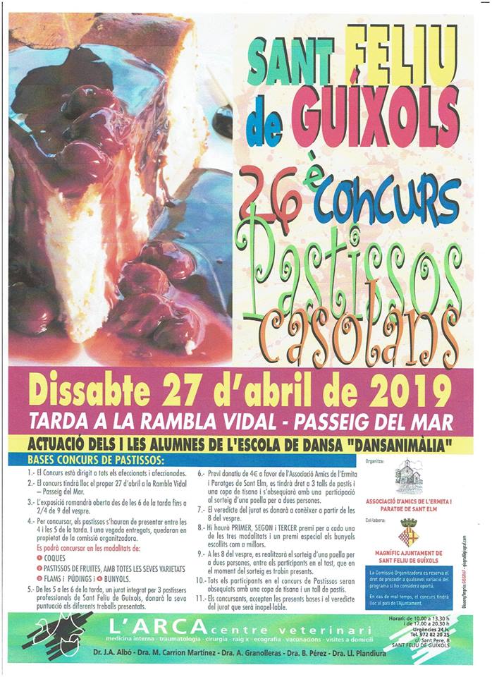 El proper dissabte 27 d’abril es portarà a terme a Sant Feliu de Guíxols el 26è Concurs de pastissos casolans que organitza l’Associació d’Amics de l’Ermita i paratge de Sant Elm.