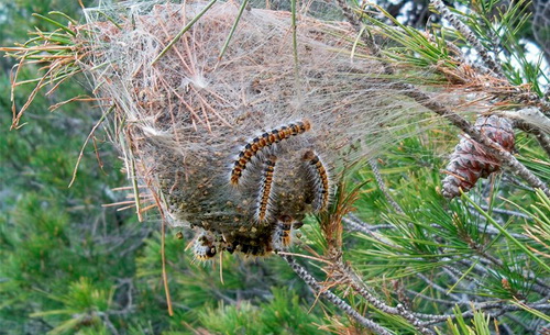 La processionària del pi és una de les plagues més importants d’aquesta època de l’any als boscos de tot Catalunya. Els canvis climatològics que estan provocant una tendència a hiverns temperats i primaveres poc plujoses n’afavoreix el desenvolupament de la seva població. També la introducció d’espècies de pi foranies i la transformació de grans masses forestals en petites pinedes han ajudat darrerament a l’extensió de la plaga. Les erugues formen les bosses a l’hivern, es mengen les fulles i afebleixen i disminueixen el creixement dels pins i alhora els fa vulnerables a altres tipus d’invasions.