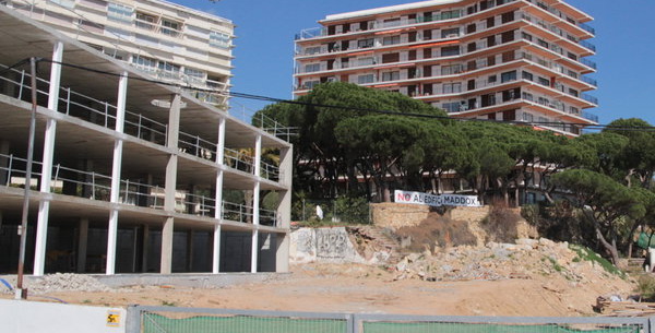 Les obres de l’edifici residencial al solar de l’antiga discoteca Maddox avancen, però amb pausa, a pocs metres del Cavall Bernat, en primera línia del litoral de Platja d’Aro. Les promotores, Stoneweg i el Grup Castellví, han deixat els treballs congelats des de fa diverses setmanes, amb l’estructura acabada però cap altre senyal d’activitat, fora dels cartells que anuncien la comercialització de nou habitatges de luxe. Però el regidor d’Urbanisme, Josep Maria Solé, diu que es tracta només d’un temps d’espera mentre s’acaba de tramitar la nova llicència d’obres i es resol un nou període d’al·legacions.