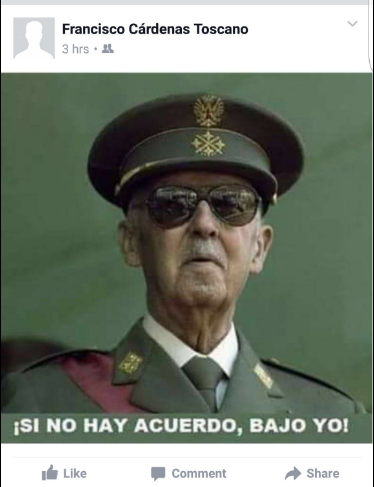 Des d’ERC Guíxols volem denunciar la publicació del regidor Cárdenas al seu perfil de Facebook amb una fotografia del dictador feixista Francisco Franco.