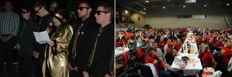 Es tractava de l’anomenat sopar de colles, un àpat condimentat a casa i transportat al pavelló per escalfar motors de cara a la festa que esclatarà amb el Dijous Gras i on les padrines, la Carnestoles 2015 Fina Plaja ( la Reina Claustrofòvia” de la colla Los Frikis), les autoritats i els antics Carnestoltes, a més d’altres representants, varen animar la festa esperonats pel públic present.