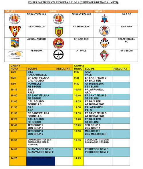 Tot seguit hi podeu trobar tots els horaris d’aquesta matinal de futbol.