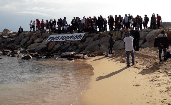 La manifestació era per mostrar la disconformitat amb la intenció de convertir l’espigó del Racó de Garbí de la badia en un lloc “recobert de formigó amb aspecte d’embarcador per a embarcacions turístiques”.