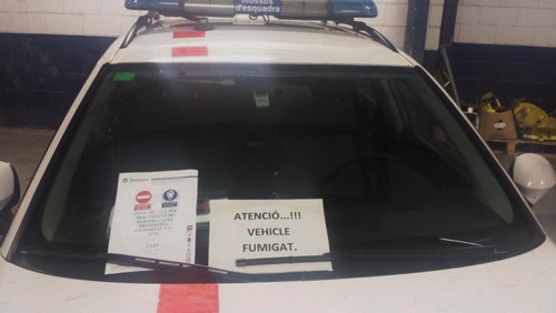 Dels dos cotxes, un ja pot tornar a circular, però els mossos no podran entrar en el segon fins demà perquè s’ha hagut de tornar a fumigar un segon cop per eliminar aquests paràsits”.