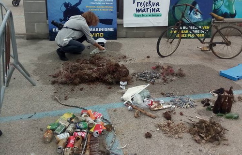 Ni la llevantada prèvia ni la pluja, que també va fer acte de presència, no foren cap impediment perquè els voluntaris portessin cap a la superfície les restes abocades al mar com ara llaunes, ampolles, xarxes, fils de pescar i altres elements com una bicicleta.