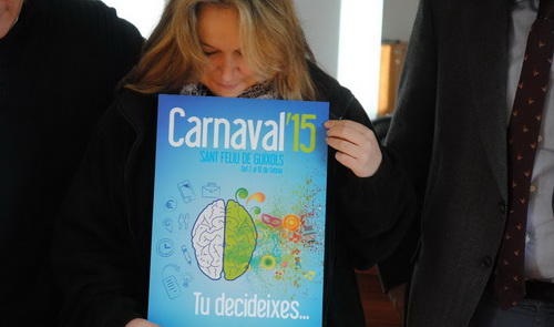 El dissenyador David Vilardebó, l’ha lliurat el matí d’aquest dimecres a la que serà la reina Carnestoltes, la Reina Claustrofòbia (colla Els Frikis) i també a l’alcalde, Joan Alfons Albó i el regidor de Cultura Pere Albó el cartell del Carnaval 2015.