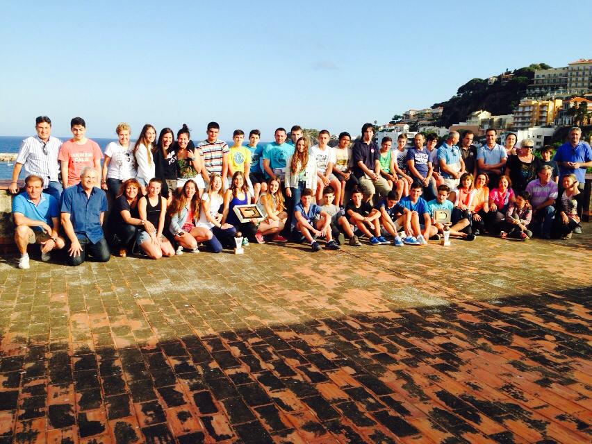 Les dues entitats que acullen a centenars de joves en els respectius clubs modèlics han tancat les seves respectives temporades amb diverses celebracions i també ascensos. El més important però, és la tasca de formació dels joves guixolencs tant com a esportistes com en els valors que porta implícit l’esport en les relacions entre joves i el treball en equip. A dalt els integrants del C.B Guíxols a la terrassa de l’Ajuntament després de la recepció de les autoritats i a la foto inferior un moment del sopar dels integrans de l’Escola de Futbol Sant Feliu.