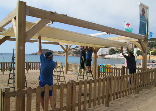 El passat dimarts els operaris de la brigada estaven ultimant la instal.lació de tendals dels Clubs Infantils de les platges del davant i la de Sant Pol. Tammateix es canvia la casseta d’informació de Sant Pol. Aquests dos elements d’estiu varen generar crítiques de Tots per Sant Feliu en la informació que publicàvem fa uns dies en la qual TSF denunciava que per a l’equip de govern l’estiu no havia començat (http://www.rsf.fm/2014/tsf-acusa-al-govern-de-deixadesa.html ). Al dia següent l’alcalde replicava que aquests comentaris no tenien fonament atès que l’any passat era el primer que s’instal·laven els Clubs Infantils i es va fer a principis de juliol i que les guinguetes d’informació s’obrien a finals de juny.