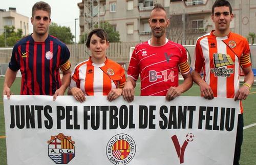 Els capitans de l’ Ateneu Deportiu Guíxols, el Vilartagues C.F i l’equip femení de l’Escola de Futbol Sant Feliu,els tres equips sènior de la ciutat, i el capità del Juvenil de l’ Escola en representació dels més de 300 jugadors del futbol base, donant una imatge positiva de la unitat que es persegueix amb aquest acord.