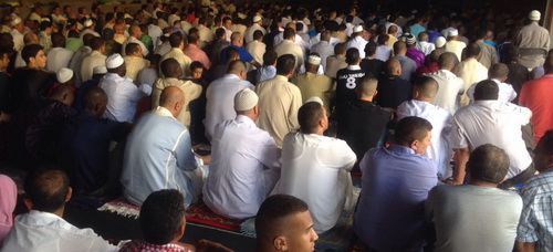 Més de mig miler de musulmans varen celebrar la setmana passada, en una de les antigues naus de la fàbrica Agglotap, cedida per l’Ajuntament de Sant Feliu de Guíxols, la cerimònia que posava fi al mes del Ramadà 2015, la festa final del dejú.