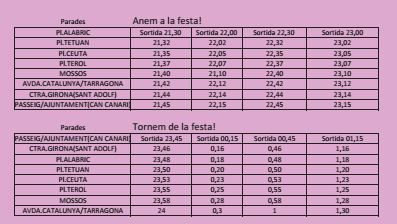 El preu del viatge serà l’habitual i els horaris previstos de cada pas per les parades el trobareu en el requadre següent: