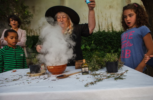 Els assistents varen conèixer algunes de les plantes tòxiques que utilitzaven les bruixes bones per a fer ungüents, olis i altres remeis. La bruixa Ibèria va ser l’encarregada de transmetre aquesta saviesa i d’explicar la recepta secreta de l’oli de bruixa de la Pedra Alta, que els petits aprenents varen poder elaborar i endur-se’n a casa per a guarir futurs problemes de salut. Per acabar el matí, la bruixa Ibèria els va ensenyar la seva màgia, al fer bullir una caldera sense foc, només amb herbes medicinals, una mica de pols de banya d’unicorn i aigua d’un racó de la platja de Sant Feliu. Foto: Jordi Gallego.