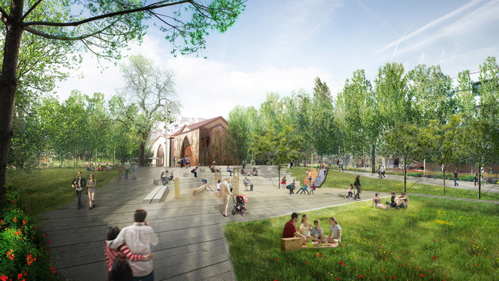 D’igual forma, es configura un espai central al que avui és l’aparcament. Serà l’espai d’arribada des de la zona est de la ciutat fins a la nova plaça.