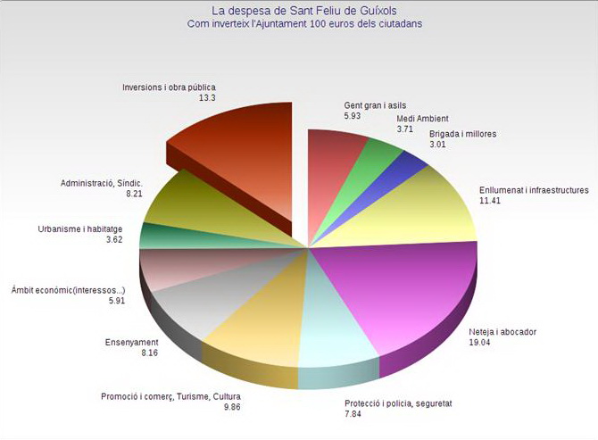 El primordial dels números de l’Ajuntament és que “podem abordar amb garanties temes de política social, molt castigada per la crisi; també podem apostar per l’economia local (promoció de la ciutat), eixugar deute i fer front a la recent sentència judicial que ens obliga a fer front a 950.000 euros per una expropiació de zona verda herència d’un govern anterior”. Sense descuidar la inversió en obra pública.