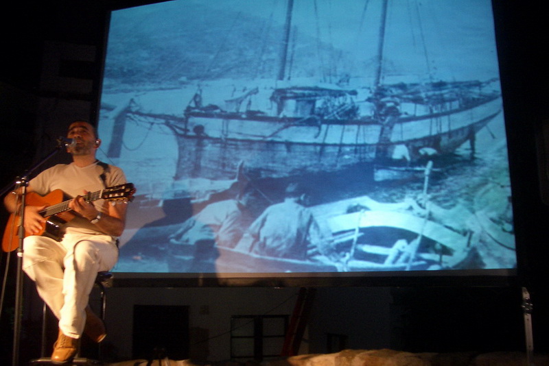 El concert, que se celebrarà aquest dimarts a les 10 de la nit a l’escenari dels Jardins Juli Garreta, compta amb una pantalla o es projecten vídeos amb muntatges fotogràfics amb diversos continguts on, a més de les fotos relacionades amb el mar del primer terç del segle passat, n’hi haurà un de fets singulars ocorreguts a la ciutat, un altre amb un munt de personatges guixolencs vinculats a les tavernes, cantaires i gent relacionada amb la pesca, altres amb fotos familiars per acompanyar cançons com “Pare Joan” o bé Rumba a la mare” o els relacionats amb les exposicions obertes dels “Serrans i Jurioles” de Cales Piqueras o el de l’exposició que la Quimeta està oferint a la Cambra de Comerç.