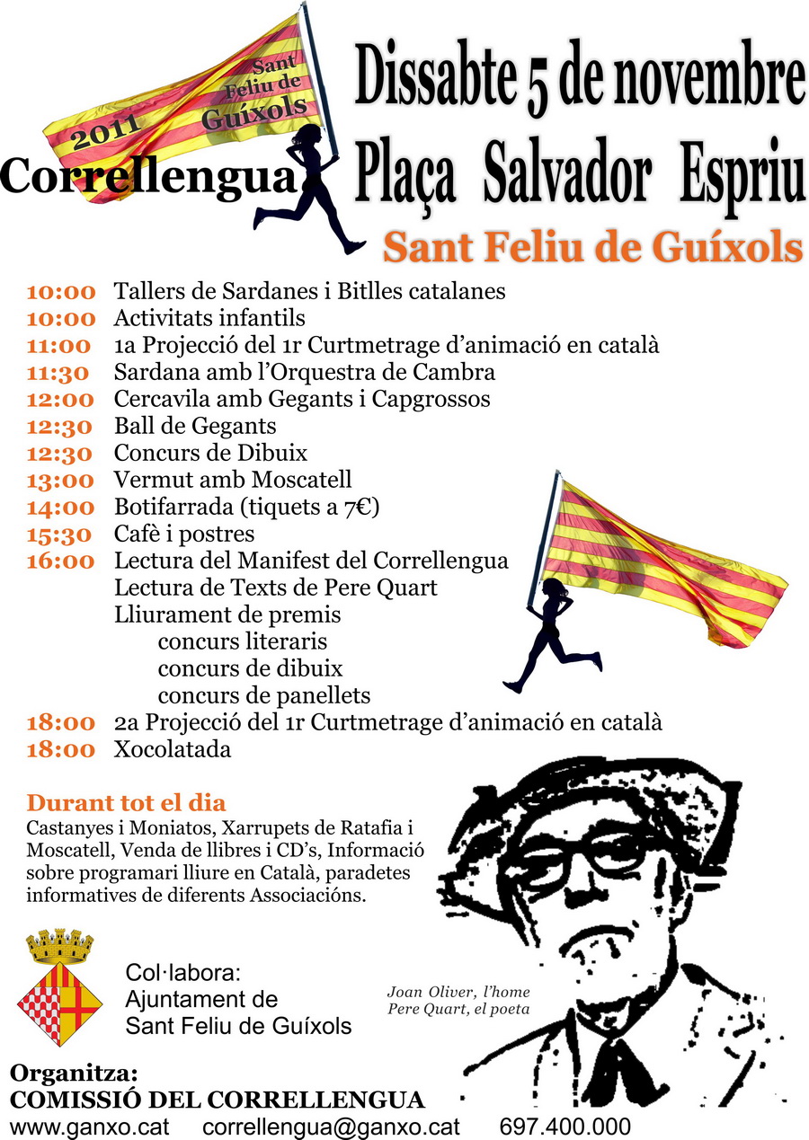 El proper dissabte, 5 de novembre a partir de les 10 del matí a la Plaça Salvador Espriu, el Correllengua farà acte de presència a la nostra ciutat.
