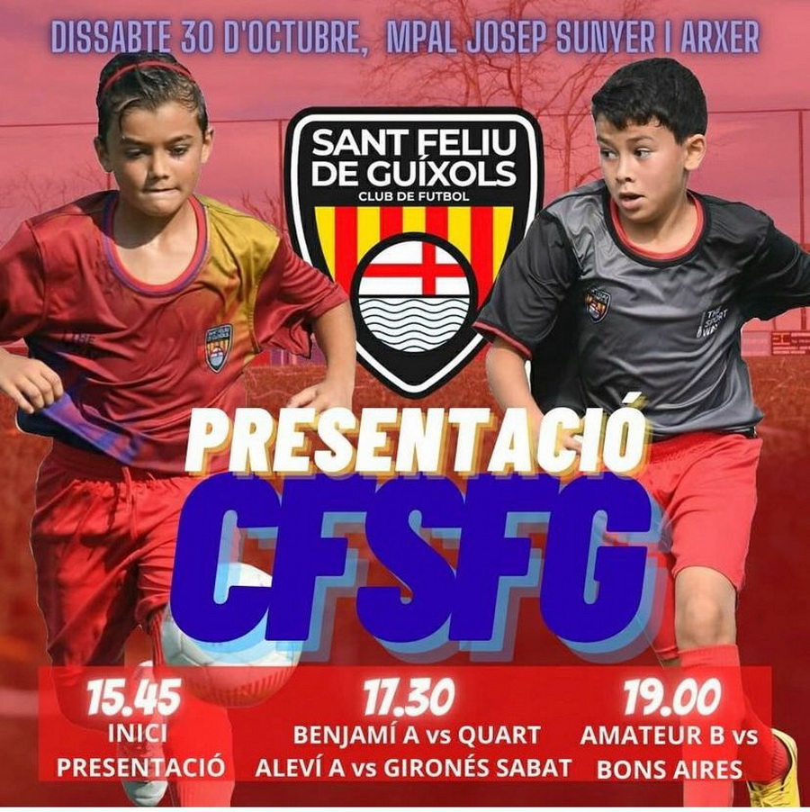 Des del club s’ha organitzat una gran diada de futbol amb moltes sorpreses, perquè tots els jugadors gaudeixin d’una presentació com es mereixen. Aquesta temporada s’ha decidit realitzar-ho al Municipal Josep Sunyer i Arxer, per la major disponibilitat d’aforament i que així ningú s’ho perdi.