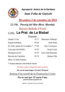 L’Agrupació Amics de la Sardana ha organitzat la darrera ballada de l’estiu amb “La Principal de La Bisbal”.
