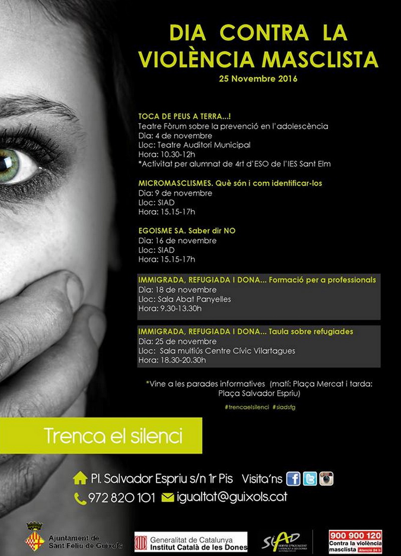El dia 25 de novembre se celebraràel dia contra la violència masclista amb el següent programa d’activitats: