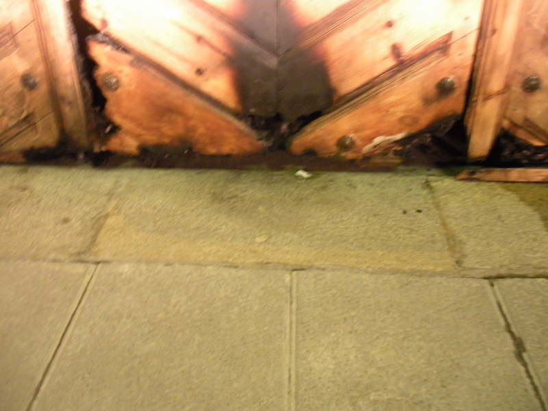 En aquesta ocasió la porta ha quedat molt més malmesa i el líquid s’hauria dipositat al terra, la qual cosa podia haver facilitat que les flames anessin devorant les arestes que fan ajustar les diverses obertures d’aquest tancament.