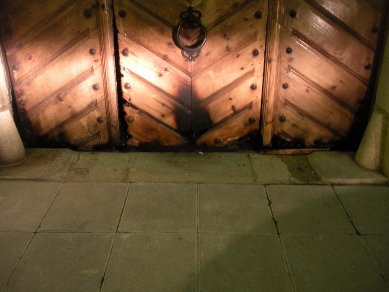 Pels volts de les 5 de la matinada del dissabte a diumenge es va donar el senyal d’avís per un foc que s’havia produït a la portalada d’accés (per la banda de la plaça Mercat)